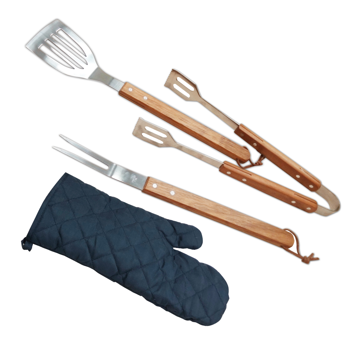 סט ברביקיו איכותי הכולל מזלג, מלקחיים, ספטולה וכפפה. הכלים עשויים מתכת אל-חלד עבה עם ידיות עץ ארוכות לנוחות ובטיחות מרבית בזמן הצלייה. מגיע באריזת מתנה. מושלם לחובבי גריל.