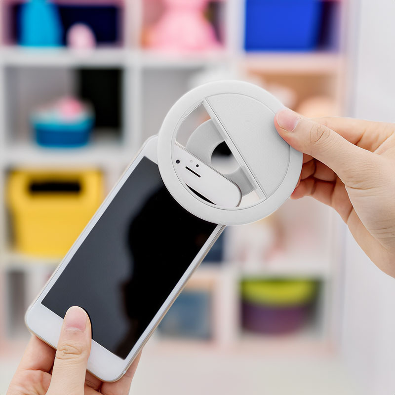 טבעת תאורה לסלפי עם קליפס טבעת תאורה קומפקטית עם קליפס חיבור לסמארטפון, 3 מצבי תאורה וכבל טעינה – מושלמת לצילום סלפי מואר בכל מצב.