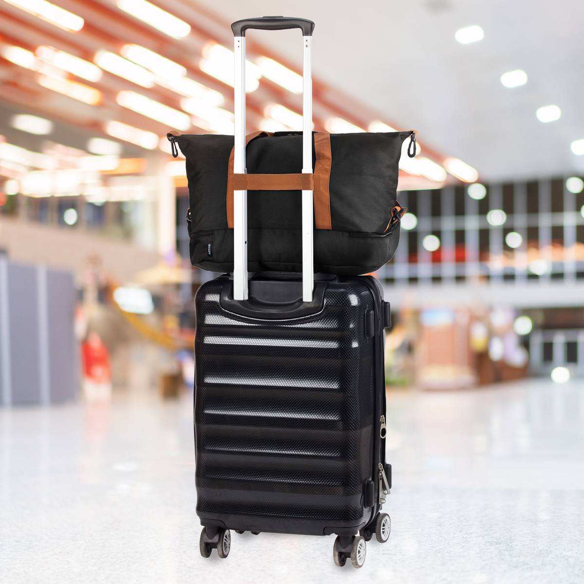 תיק אלגנטי לנסיעות ולספורט תיק אידיאלי לנסיעות ולספורט, עשוי בד חזק ועמיד עם ציפוי נגד מים. מצויד ברצועת כתף, ידיות אחיזה ורצועה למזוודה לנשיאה נוחה. כולל תא נפרד לנעלים וביגוד רטוב לאחר פעילות.