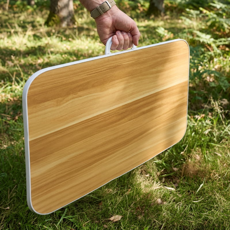 שולחן מתקפל לפיקניק ולחוף שולחן מתקפל ונוח לשימוש לפיקניק, חוף וטיולים. כולל משטח עליון בגימור דמוי עץ למראה טבעי ורגליים מתקפלות ממתכת ליציבות מרבית. נפתח ומתקפל בקלות ומגיע עם ידית נשיאה לניידות נוחה לכל מקום.