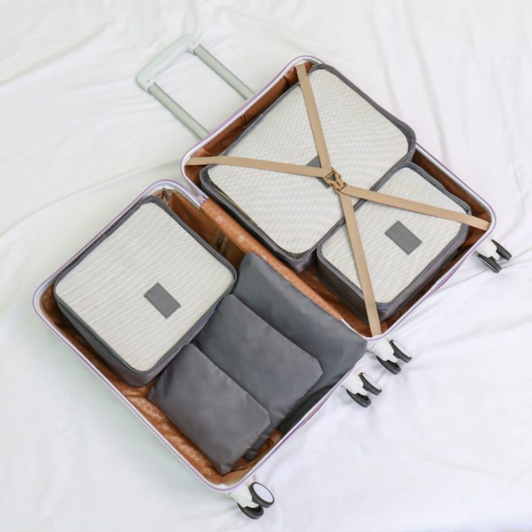 כולל 6 תיקי אחסון לסידור מזוודה:3 תיקים סגורים ו-3 תיקים עם רשת בגדלים שונים.